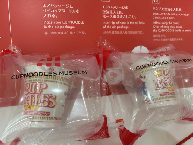 カップヌードルファクトリーでは、味や具材を選べて、自分だけのオリジナルカップヌードルが500円で作れます。記念になりますね。(その場では食べられません。)