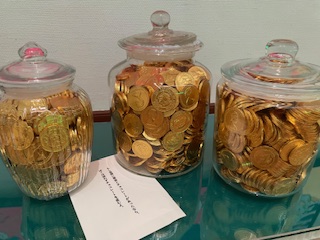 コイン❓チョコレート❓どちらなのかなぁ…とどろぼうの気分で見てしまった金色のコインが詰まった瓶など、大人もワクワクする世界観に包まれました