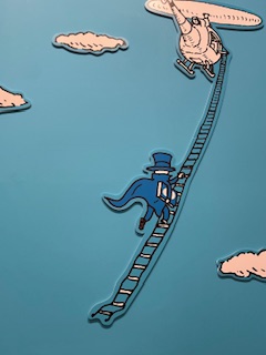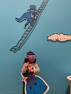 本エリアを過ぎて行くと、逃げるどろぼうと写真が撮れるスポットがあり、変装できるパネルまで用意されていました